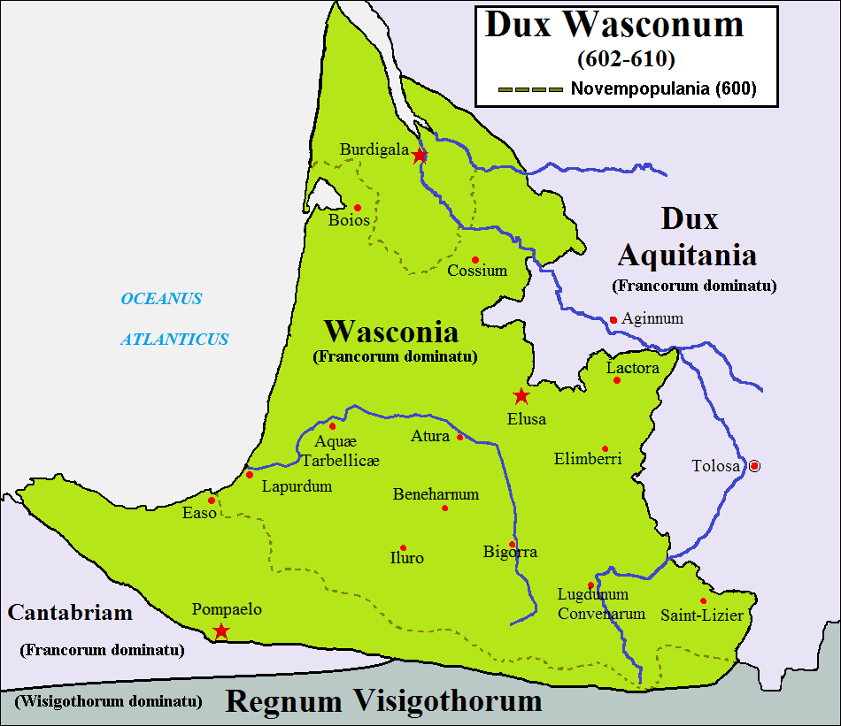 Les Francs après avoir vaincu les Huns en 451 prirent l’ascendant sur tous les autres peuples. En 507, les Wisigoths vaincus par les Francs se replient en Espagne prenant Tolède pour capitale. Les Vascons, venant du pays basque espagnol, apparaissent en 561 à l’occasion d’une alliance avec la Novempopulanie pour contenir l’avancée des Francs. De cette union naîtra »Le Principat de Vasconie », qui fut une éphémère Gascogne indépendante, de langue Euskara et Occitane avec Bordeaux pour capitale. Les Vascons, peuple frère, de mêmes origine, langue et religion, ne rencontrèrent aucune opposition à leur venue de ce côté des versants pyrénéens, bien au contraire .