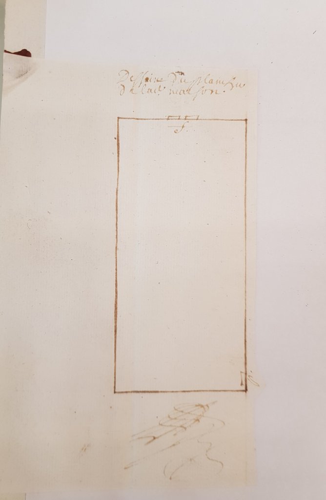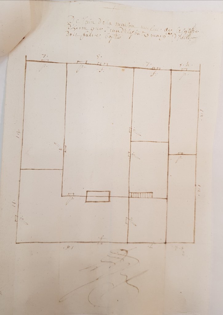 Dans les minutes du notaire Jean Hossedeleyre1, j’ai trouvé ce plan, de la maison dite de l’église à Herm, dessiné au sein d’un acte daté du 4 février 1691.