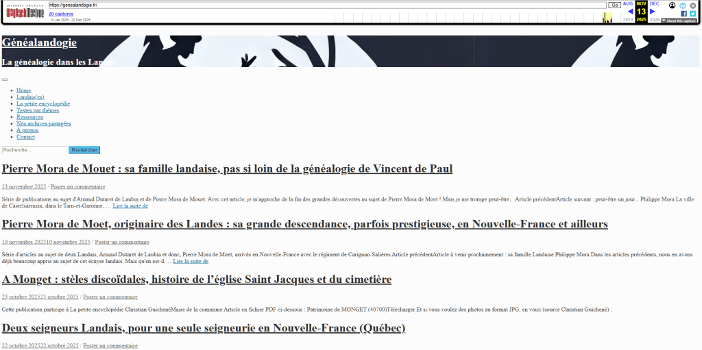 Les pages et contenus sur Internet, comme les vieux papiers et autres documents, peuvent disparaître. Encore récemment, Orange a fermé toutes ses pages personnelles engloutissant quantité de sites d’un seul coup. Parmi eux, il y avait un ancien cite de Cyril Delmas-Marsalet, généalogiste bien connu dans les Landes.