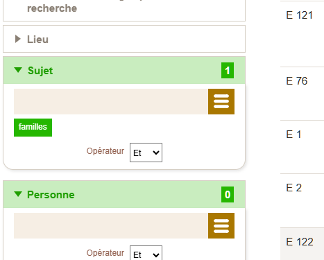Un petit texte rapide pour vous partager un autre inventaire pertinent pour les généalogistes. Pour le trouver, il suffit de faire une recherche « dans toutes les archives » (cliquez sur la grosse loupe), ensuite, écrivez simplement dans la section sujet, « familles », vous pouvez choisir la période désirée, ajouter un nom, mettre une cote (le « E » pour série E par exemple) et vous aurez quelques résultats concernant les familles landaises. Pour mon exemple, j’avais choisi la période avant 1800. Si vous ne mettez pas de période, vous aurez beaucoup plus résultats (plus de 2000).