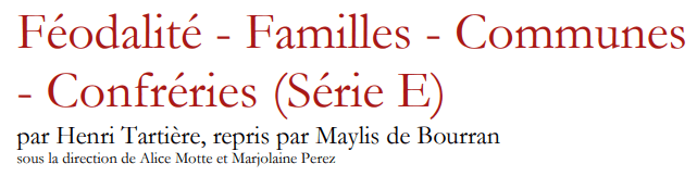 Ensuite, vous verrez une dominante de documents dans la série E si vous avez choisi la même période que moi, série E que les AD intitulent ainsi : Féodalité – Familles – Communes – Confréries. Si vous cliquez sur une référence de cette série E, il y aura un bouton d’accès à l’inventaire de cette série. Cet inventaire est en PDF et vous permet de faire un tour d’horizon des familles référencées !