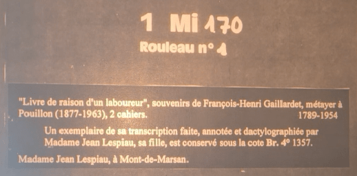 Informations sur les dates : 1877 – 1963 sont les dates de naissance et de décès de François Gaillardet, tandis que 1789 à 1954 sont les dates extrêmes de la période concernée par les écrits du métayer. C’est le type de classement classique aux archives : un titre explicite et représentatif avec les dates de la période couverte par le ou les document(s).