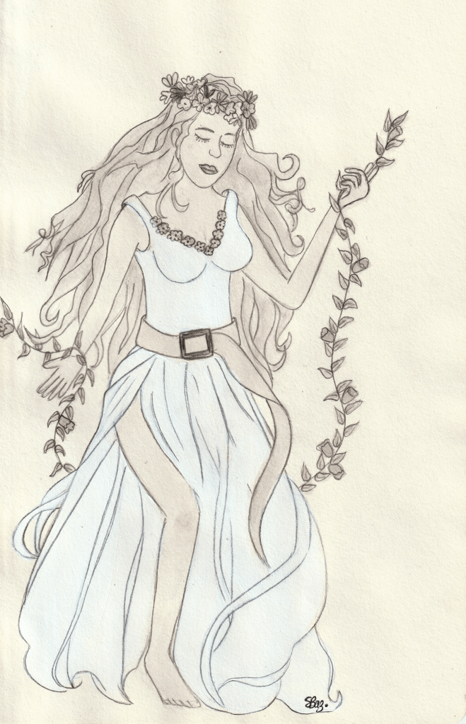 Puis il aperçut un groupe de femmes qui riaient en face de lui, si belles et gracieuses que c’était un plaisir de les voir. Il y en avait une, toute jeune, qui portait sur ses cheveux une couronne tressée de bruyère et d’ajoncs fleuris.
