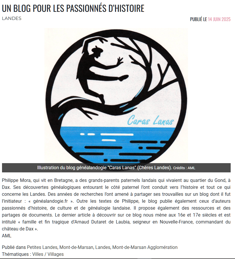 Ce journal a des éditions départementales : devinez dans laquelle l’article est paru ? Dans celle des Landes bien sûr ! 🙂