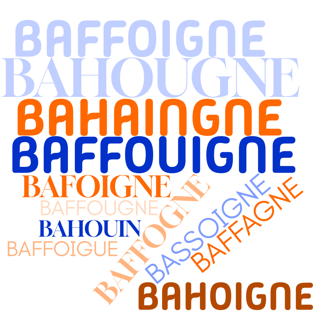 Nous avons eu en effet une famille, depuis la création de notre nom vers 1500, composée de notaires, juges, huissiers, etc., qui savaient tous écrire, et, génération après génération, bien que se nommant eux même oralement Bahouigne (prononciation gasconne) écrivaient Baffouigne ou Baffoigne. En effet, à Onesse-et-Laharie, Sindères, Morcenx, en gascon (dit aussi « patois »), il est quasiment impossible de prononcer BAFFOIGNE ; cela donne quelque chose entre BAHOUGNE (plutôt BAHOUIGNE) et BAHOGNE.