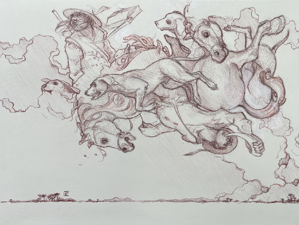 Un roi qui quitte la messe pour une chasse au sanglier ? Le curé le maudit et l’impie est emporté par un grand vent dans le ciel, avec ses valets et ses chiens, pour une chasse éternelle et improductive. Le seigneur est entièrement vétu de noir, a les cheveux hirsutes, son cheval est maigre… Vincent Foix nous parle de cela en page 8 de son ouvrage.