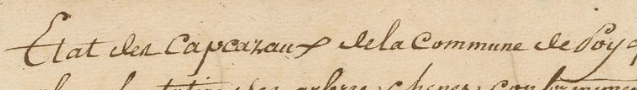 « Etat des capcazaux de la commune de Poy qui sont tenus à la plantation des arbres chênes conformément aux statuts de la commune réglementaire à ce sujet »