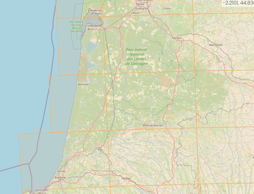 Alors voici une carte qui présente les différents feuillets qui couvrent les Landes :